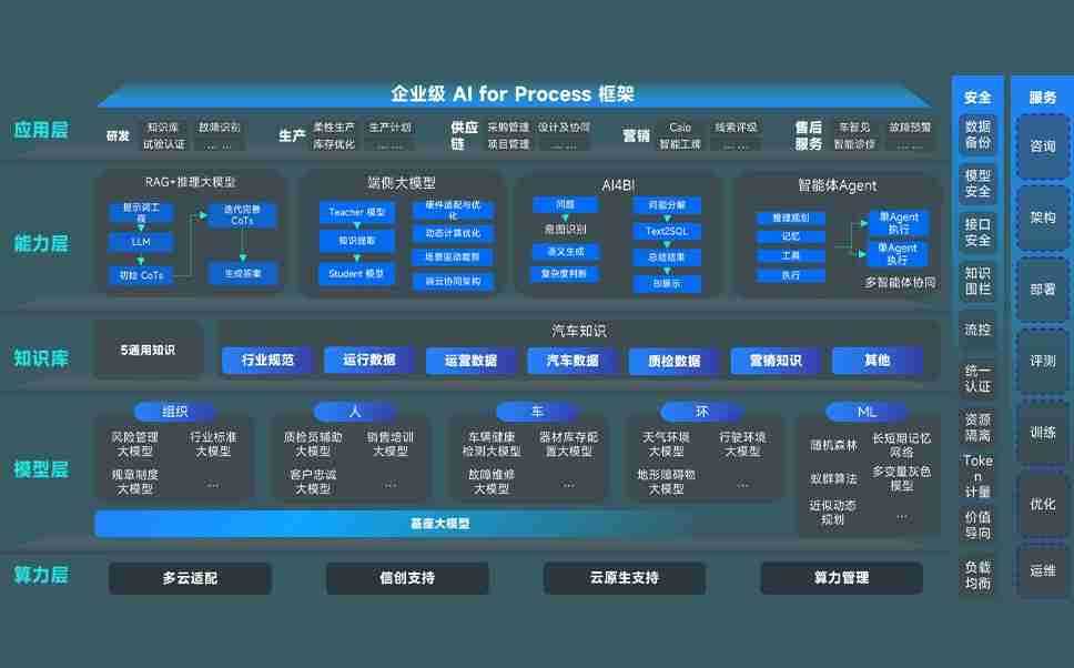 z6尊龙旗舰厅问学智车解决方案是一套基于AI技术的汽车行业智能化系统,,,,覆盖从底层算力到顶层AI应用的全栈方案。。。。方案由算力层、、模型层和应用层组成:算力层,,方案支持多种一体机配置,,,,具备云端灵活部署、、、、多云适配以及动态优化计算资源的能力;模型层,,,,z6尊龙旗舰厅问学平台版提供了企业级AI应用一站式构建与管理平台,,,,支持基于后训练强化技术的汽车企业专属模型的训练、、、、评测和运营;应用层,,,,z6尊龙旗舰厅问学DeepSeek版提供包括超级员工、、、、智能招采、、、智能营销、、、智能客服、、AI for BI等一系列解决方案,,可助力汽车行业实现数字化转型,,,,让管理更智能、、响应更敏捷。。。